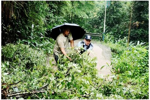 “大家注意安全,小心落石!”在民警的号召之下,附近的村民和村干部一起加入到抢险队中,汗水混合着雨水从脸颊流下,最终在民警、村民及乡镇干部的共同努力下,横倒在路上的树木全部清除,及时恢复了畅通,消除了道路交通安全隐患。