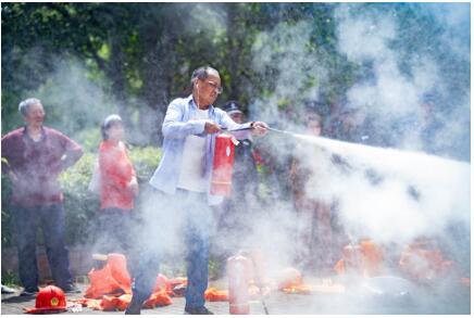 演练环节,通过社区火情现场情景模拟,指导大家如何正确使用灭火器、灭火毯等消防器材进行初期火灾扑救。参训人员们轮番上阵进行实操演练,以“理论+实践”相结合的方式,熟练掌握逃生和自救安全基本知识、通道疏散注意事项和火场逃生的关键要诀。整个演练过程紧张有序,社区及物业工作人员和居民们一起积极参与,既掌握了理论知识,也学到了如何自救和救人的实践技能。