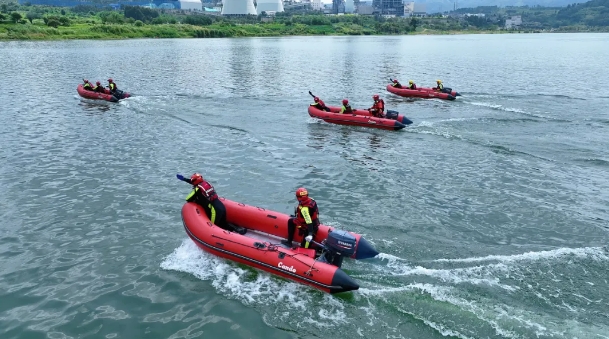 演练过程中,轻型队成员按照行动规程,编入管理、搜索、营救、潜水等小组,各参演小组分工协作,有序完成前方指挥部搭建、制作灾害现场全景图、制定搜索方案、规划行进路径、水面横渡、抛投救援、活饵救援、舟艇驾驶、编队行进、水面过障、离心力救援、孤岛救援、溺水失踪人员搜索打捞等科目,全面锤炼检验总队水域救援轻型队的实战能力。辖区阳宗海大队参与观摩学习交流。