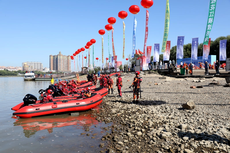 9月22日,2024吉林·松花江横渡活动在滨江公园至临江门头道码头松花江水域成功举办。吉林省吉林市消防救援支队共调集60名水域救援专业人员和16艘冲锋舟,圆满完成了此次活动的水面安全保障工作。