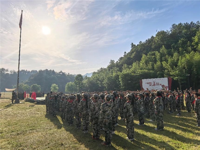 学农活动的第一天清晨,洞桥营地的操场上回荡着铿锵的脚步声。五星红旗冉冉升起,全体师生肃立注视,目光中饱含对祖国的热爱与对学农生活的期待。开营仪式上,营地负责人以热情洋溢的致辞点燃了孩子们的斗志;闻日英老师代表学校寄语学子:“迎难而上,锤炼坚毅品格!”学生代表也庄严承诺:“自立自强,团结协作,体悟劳动真谛!”