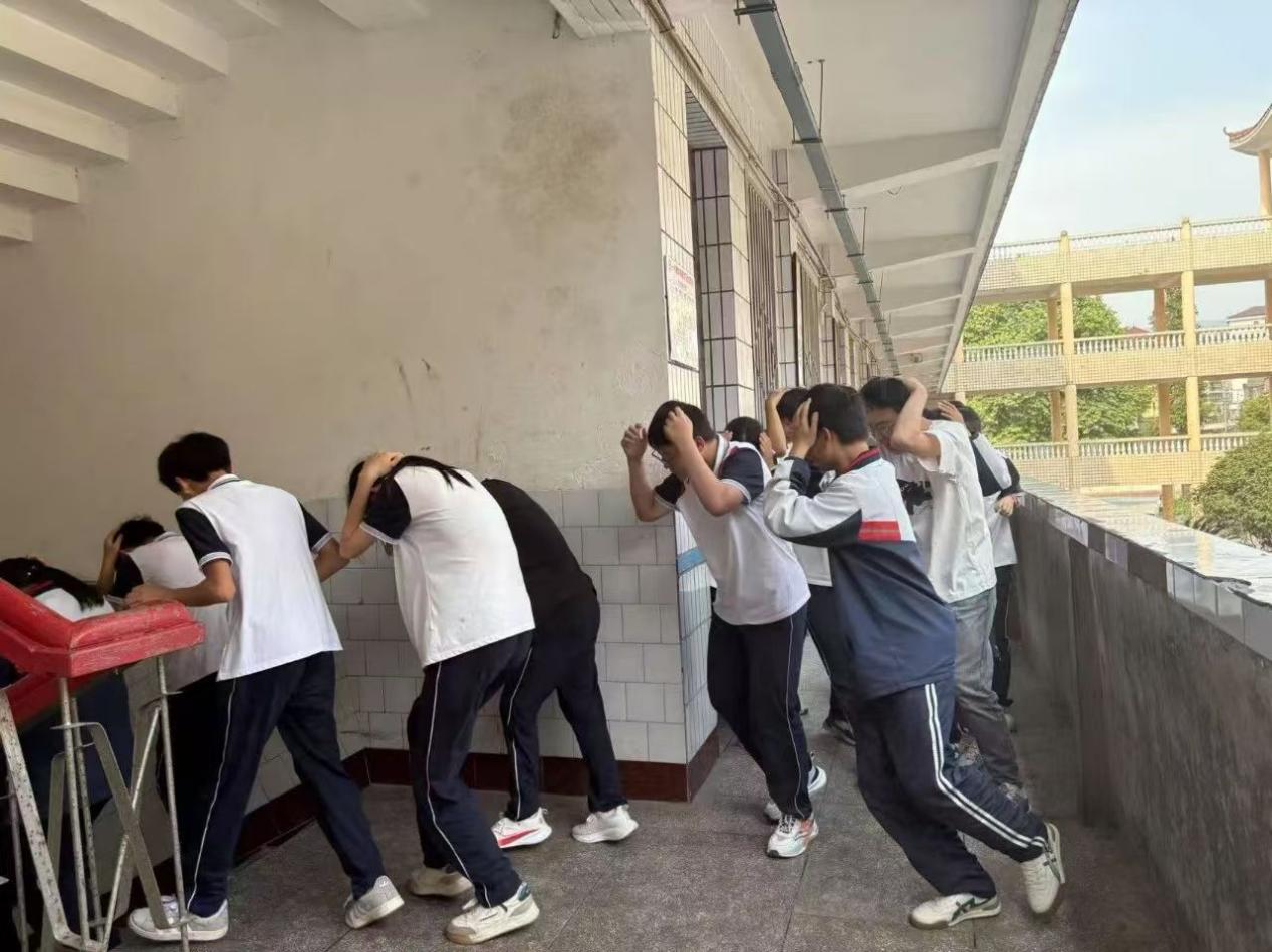 随着演练警报准时拉响,教学楼内,正在授课的教师们迅速反应,立即暂停教学活动,组织学生进行撤离。学生们熟练运用日常训练掌握的“生命三角区”保护法,快速、有序地疏散撤离。整个过程用时2分16秒,全体师生行动高效,未出现任何人员受伤情况,真正实现了速度与规范并行,彰显了日常安全教育的显著成效。