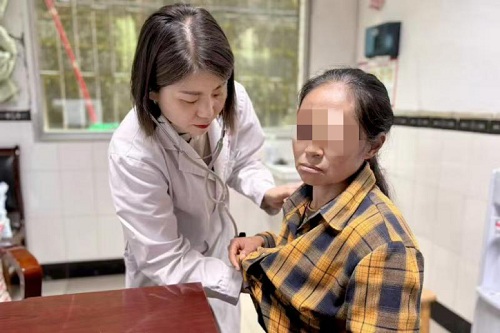 曹建菊医生为女性患者检查病情