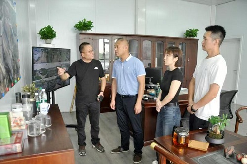 龙门镇党委副书记、镇长段胜涛(左二)带队去中心村川秦药业(内江)公司调研