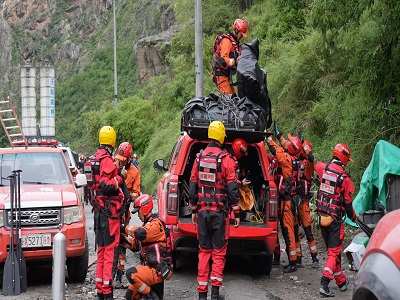 争分夺秒、同心协力,精准实施搜救行动。搜救队伍按照各自分工,迅速投入到紧张的搜救工作中。无人机侦查组利用无人机实施高低空交替、多角度飞行巡查,并完成现场唯一二维正射影像和三维建模图像,对灾区进行空中侦查,实时传输现场图像,为搜救行动提供重要参考。水域搜救组利用橡皮艇等水域救援装备,对水面漂浮物及岸边可疑痕迹,展开拉网式、精细化排查,并在河道废墟和淤泥中进行全方位、地毯式搜索,山岳搜救组携带专业山岳救援装备,深入泥泞河谷、陡峭林坡等区域,翻越山岭5公里至最危险的建筑工地展开搜索,确保不遗漏任何角落。