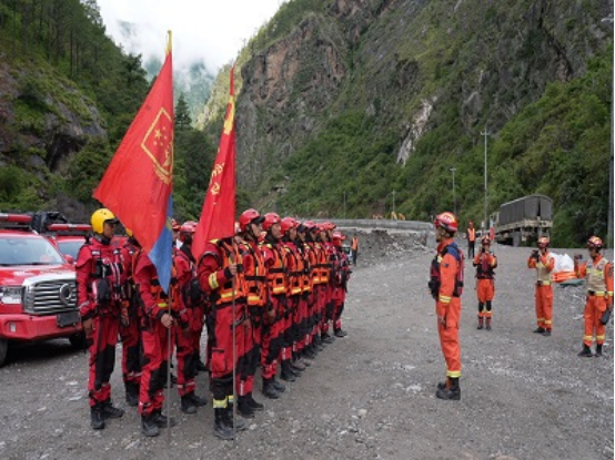 密切配合、助力救援,打造后勤坚实堡垒。灾情发生后,拉萨支队通信、后勤、宣传等保障力量遂行出动,助力整个救援行动。搜救期间,后勤保障人员购配充足生活保障物资,严格落实“三热一干”标准,为指战员持续作战奠定坚实的基础;全媒体中心人员跟进并记录救援全过程,实时发布救援动态,同步利用自媒体平台开设救援专题专栏,发送泥石流灾害消防安全提示,提升群众安全防范意识;应急通信前途小组携带无人机、单兵图传、北斗导航等装备,确保应急通信实现全要素部署,通信保障与救援行动同频共振。