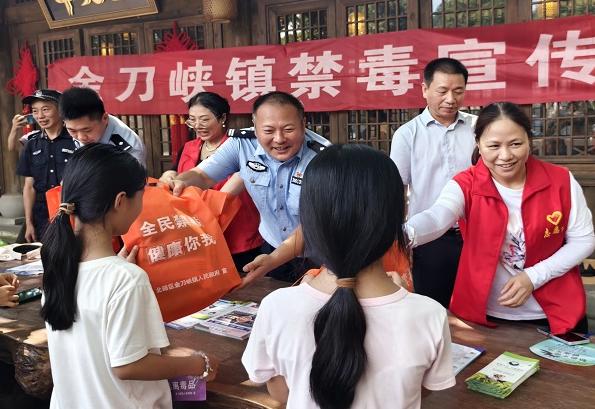 近日,北碚区公安分局禁毒支队联合金刀峡派出所、镇政府,在偏岩社区开展禁毒宣传活动,提升群众识毒、防毒、拒毒意识。