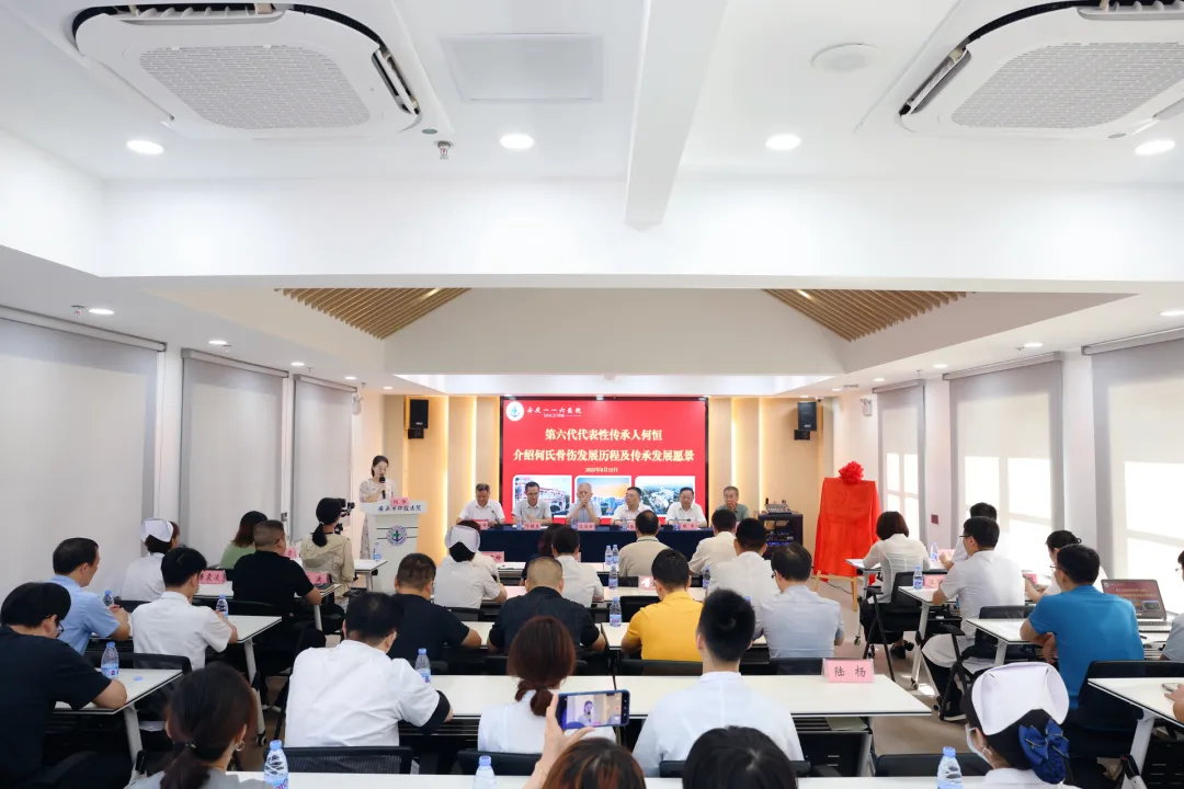 传承岐黄薪火,守护骨伤健康。8月15日,安徽省中医药学术流派“江镇何氏骨伤”学术研讨会暨流派传承工作室揭牌仪式在安庆一一六医院举行。会议由安庆一一六医院张云峰院长主持。全国名中医凌昌全教授、安庆市卫生健康委张贤惜主任等领导、专家以及中医药界同仁齐聚一堂,共同见证这一重要时刻。