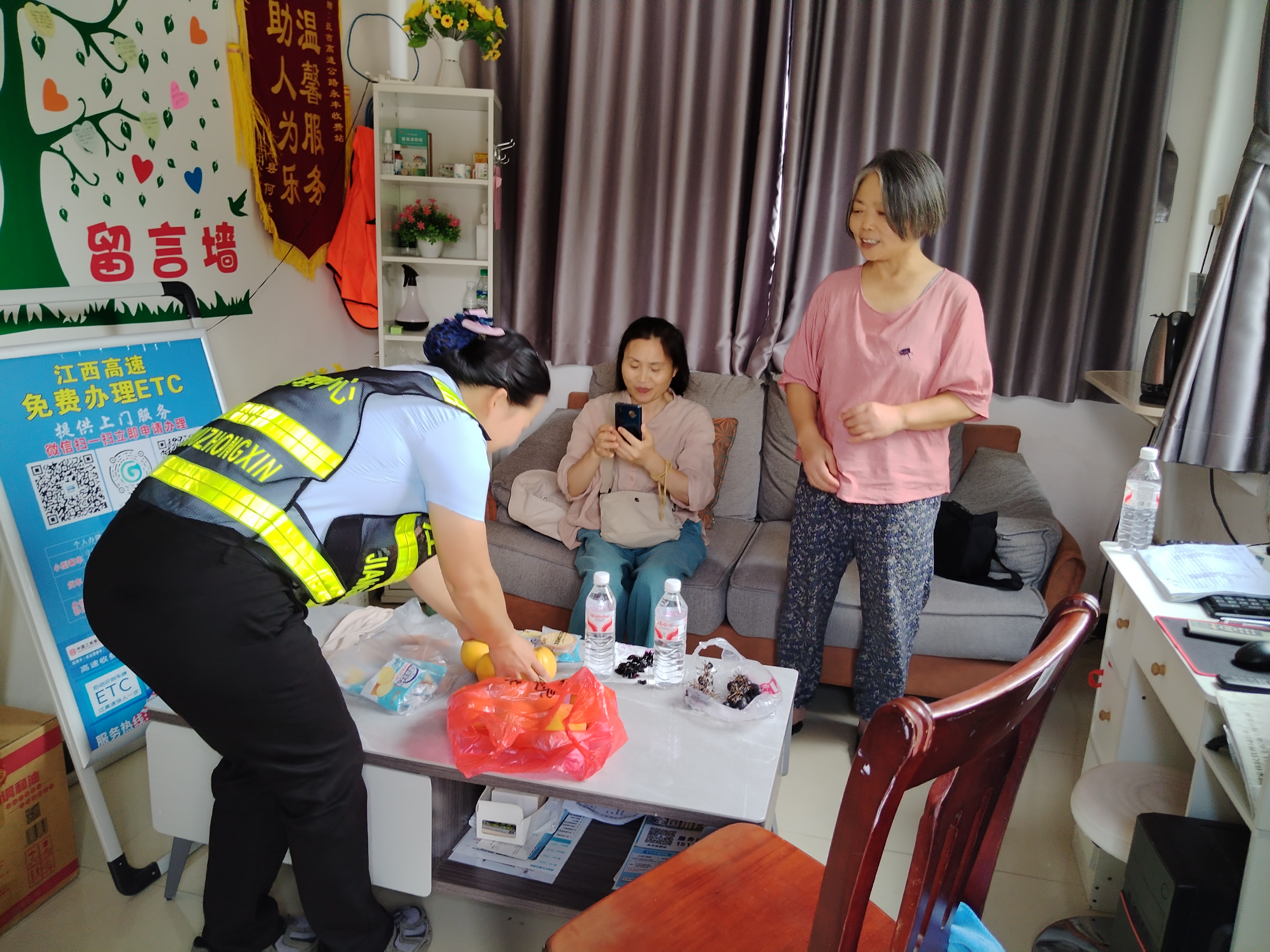 时值正午,考虑到维修人员抵达需要时间,工作人员主动邀请司乘到站内休息室等候,并贴心地提供了饮用水、饼干和水果,让司乘人员倍感温暖。约一小时后,维修人员到达现场,在工作人员的密切配合下,经过半小时的紧急维修,车辆于下午1时许成功修复并安全驶离。临行前,司乘人员连连道谢:“这么热的天气,要不是你们及时帮助,我真不知道该怎么办,真是太感谢了!”