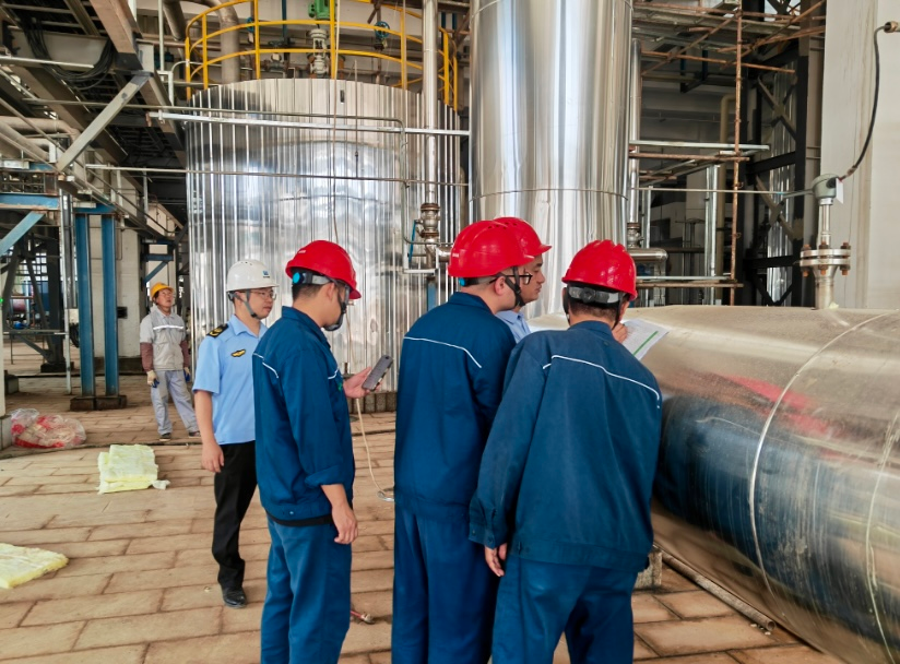 “重大危险源标识的颜色、尺寸都要严格执行国家标准,这是安全保障的第一道防线,一点都不能含糊。”帮扶服务组一到现场,就直奔前期试生产审核中发现问题的区域,开展“回头看”核查。他们穿梭在钢铁塔罐与管道之间,从精密仪表的数值校准,到应急消火栓的压力测试,再到应急通道的畅通情况,都逐一对照安全标准细致排查。