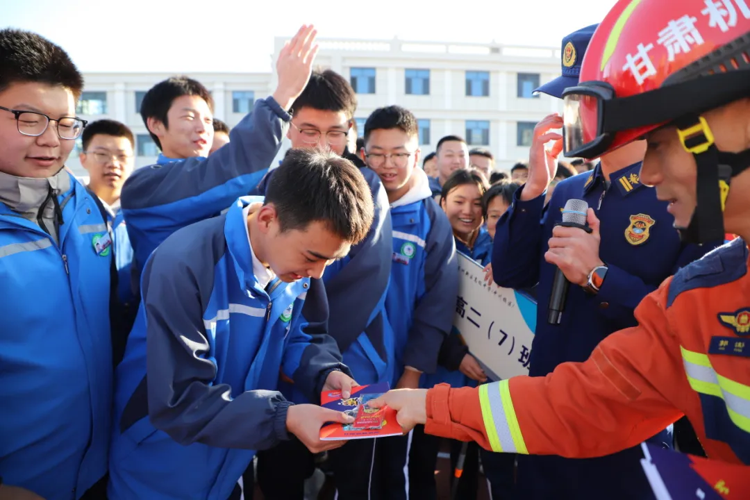 为切实增强师生消防安全意识与应急处置能力,近日,甘肃省森林消防总队训练大队联合瑞利社区工作人员走进兰州新区第一高级中学,开展“119消防安全进校园”主题活动,通过知识讲座、实操演练、趣味抢答等丰富形式,为师生们送上一堂沉浸式消防安全“必修课”。