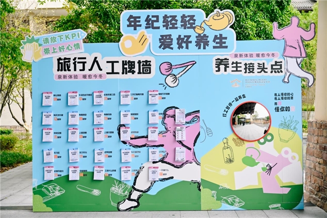 ·御汤生温泉度假酒店设置“养生接头点”,以创意“旅行人工牌墙”为打卡亮点,邀请游客领取专属工牌,轻松加入冬日养生派对,快速融入度假氛围;