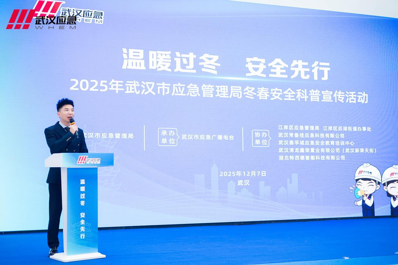 12月7日,由武汉市应急管理局主办、武汉市应急广播电台承办的“温暖过冬 安全先行”2025年冬春安全科普宣传活动,在江岸区新荣天街中庭成功举行。活动联动江岸区应急管理局、江岸区后湖街道办事处、武汉常备佳应急科技有限公司、武汉赛孚城应急安全教育培训中心等多家单位,创新采取“线下实操体验+线上直播互动”双线融合模式,为现场市民带来了一场沉浸式安全科普活动,同时吸引近200万群众在线观看和实时互动,让安全知识深入人心,推动全民应急科普。