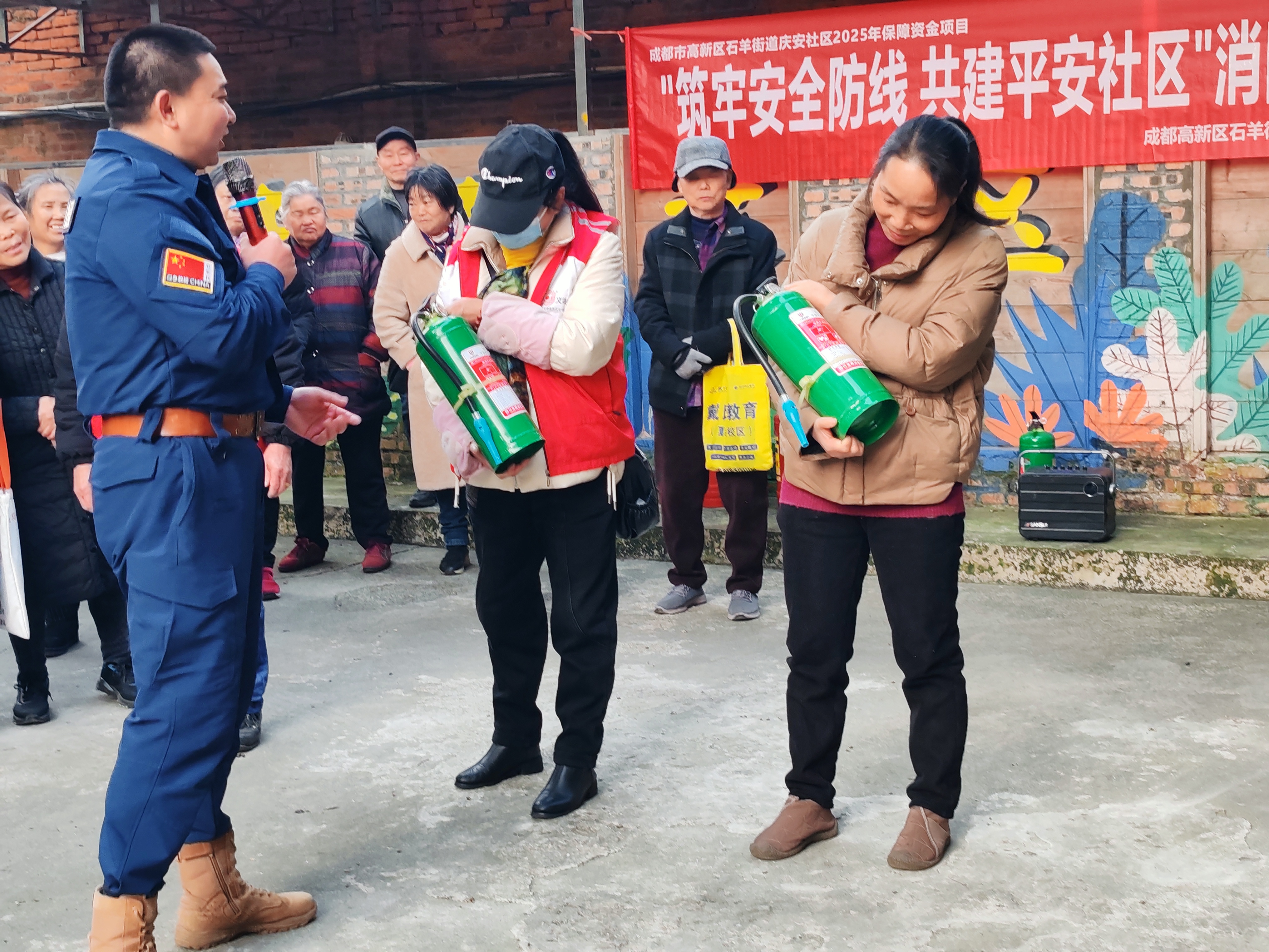 为进一步增强全民消防安全意识,提升居民应急自救能力,12月16日,成都高新区石羊街道庆安社区邀请到专业消防教官并组织志愿者进入到院落内为60余名居民开展了以“筑牢安全防线 共建平安社区”为主题的消防安全宣传与实战演练活动。