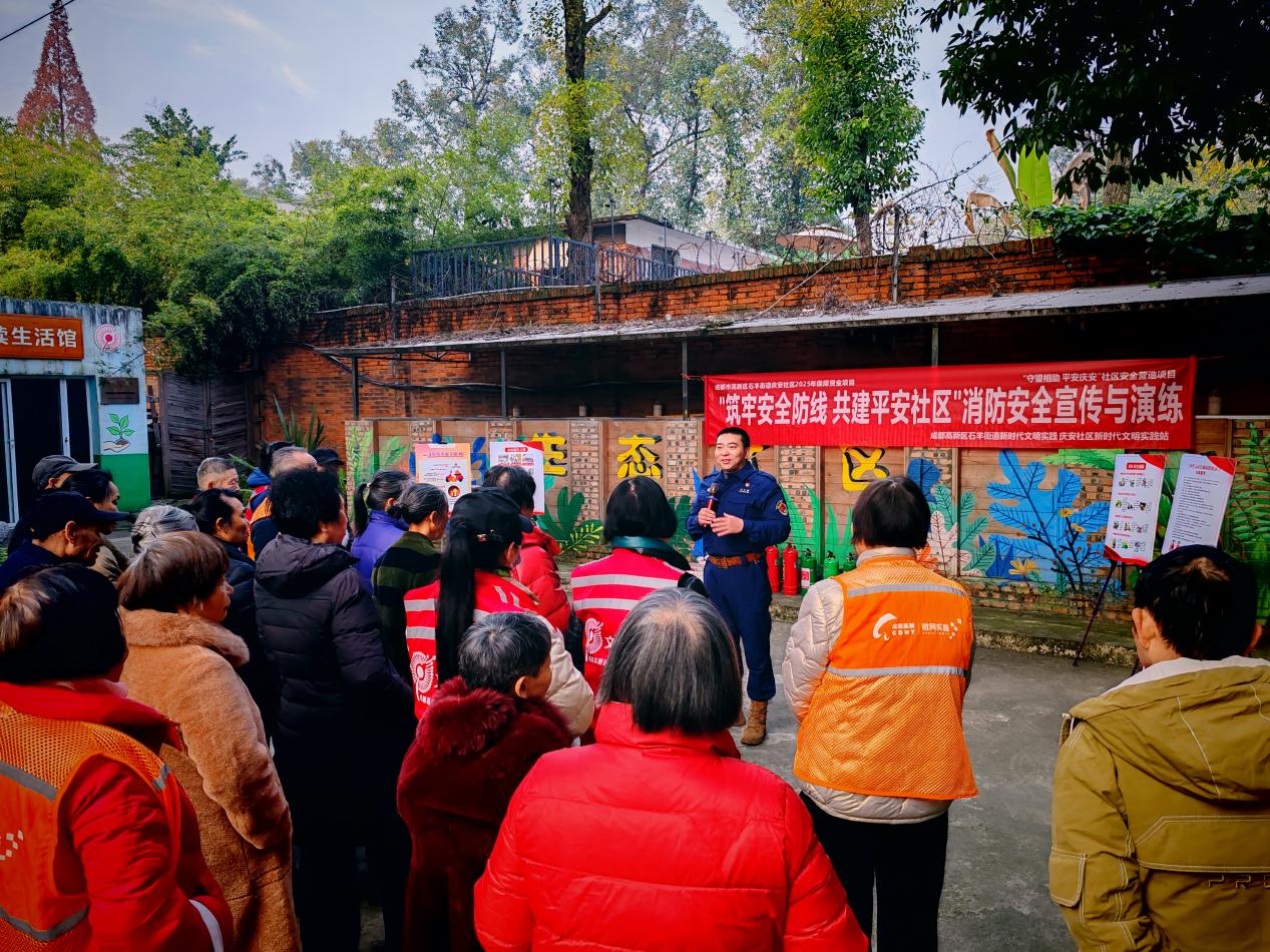 成都高新区石羊街道庆安社区开展“筑牢安全防线 共建平安社区”消防安全宣传与演练活动