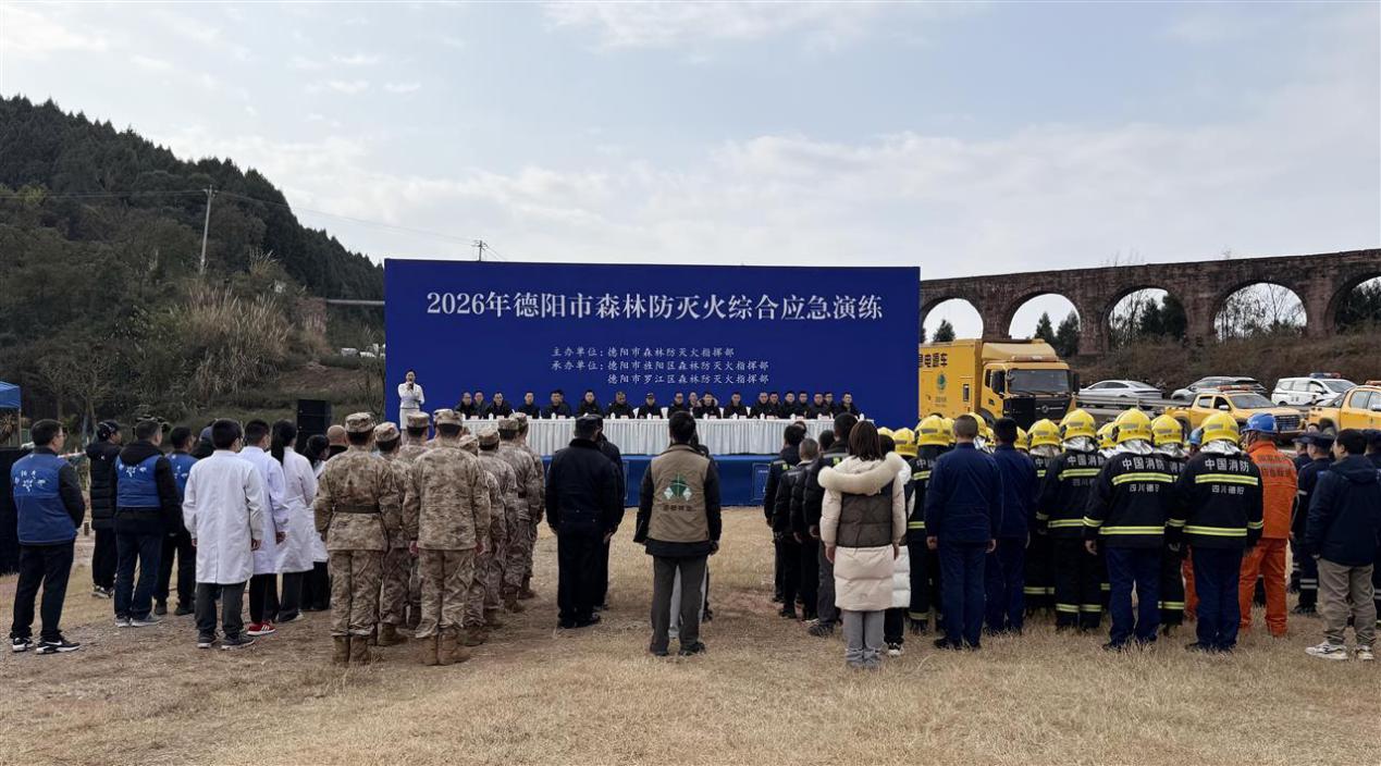 12月23日,2026年德阳市森林防灭火综合应急演练在旌阳区新中镇举行,进一步检验市、区两级《森林火灾应急预案》的科学性与实用性,切实筑牢生态安全屏障,保障人民群众生命财产和森林资源安全,为全市经济社会高质量发展提供坚实的安全保障。德阳市应急局副局长曾雪亮,旌阳区政府副区长、区森林防灭火指挥部指挥长杨群富出席活动。