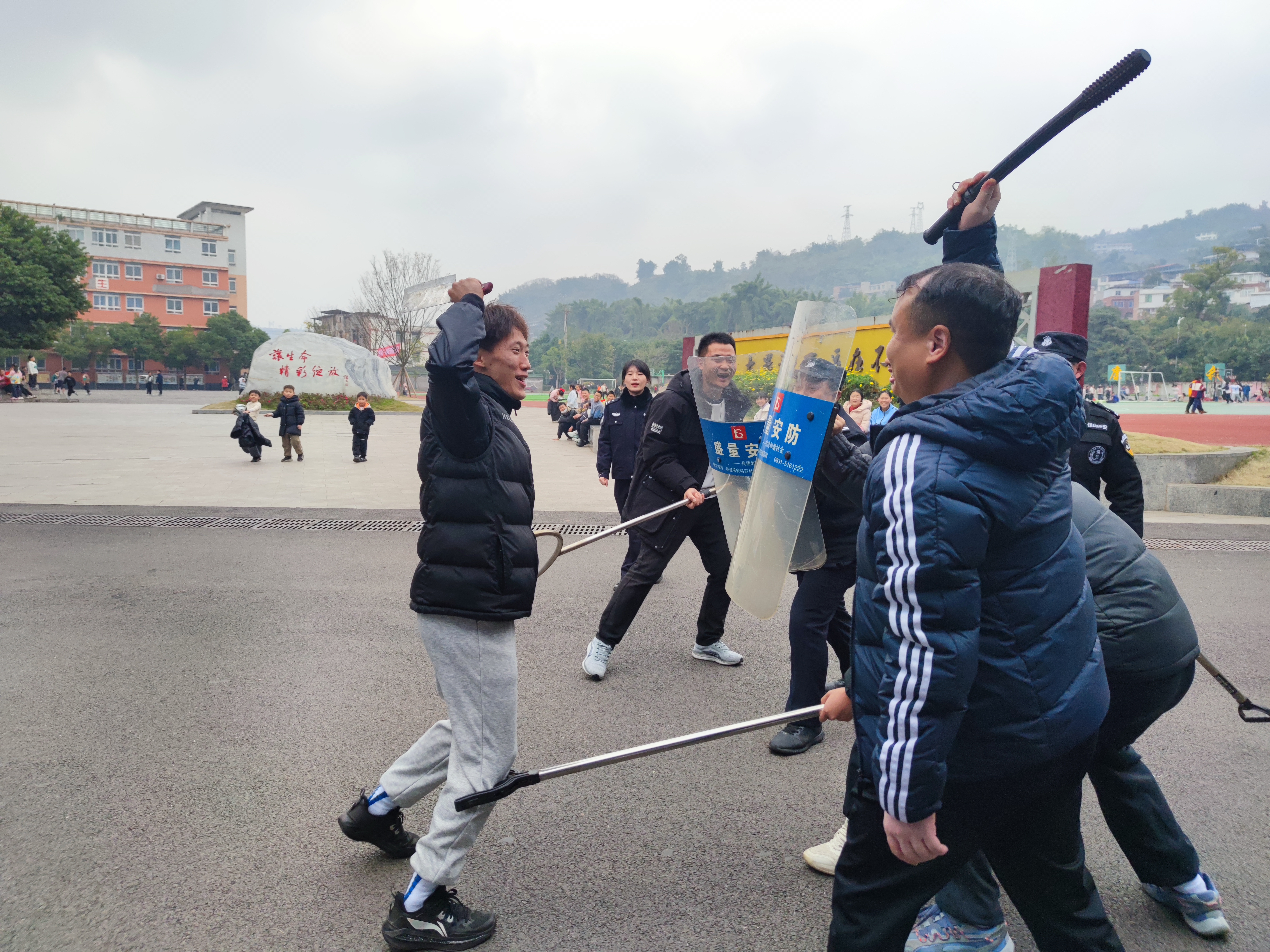 为切实提升校园应对突发暴力事件的应急处置能力,保障全体师生生命安全,2025年12月24日,宜宾市大运实验学校组织开展校园防暴应急演练。法治副校长、民警邹滨羽,分管安全副校长杨铭及学校最小应急单元全体人员全程参与,以实战化演练筑牢校园安全屏障。