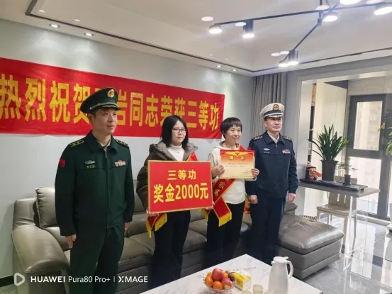 在军属家中,“送喜报小队”为军属们披上“光荣军属”绶带,送上满载荣誉的喜报和奖励金,并亲切合影留念。相关部门负责人代表工管委向军属们表示热烈祝贺:“这份喜报,是军人在部队挥洒热血的最好证明,也凝聚着你们的默默奉献。感谢你们为部队、为国家培养了如此优秀的子弟兵!”