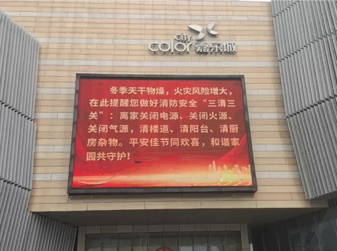 在防城港嘉乐城商圈,消防安全宣传借屏发力。各类LED屏、楼层指引屏化身流动消防宣传站,让“三清三关”提示循环流转、深入人心。