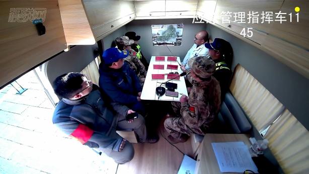 演练现场模拟持续降雪天气下,区指挥部接到山区步道游客因路滑受伤被困的险情报告。现场指挥部(这个指挥部是在遇到突发事件后临时成立的还是半山一直就有的)充分发挥“一个核心”统筹作用,迅速启动多部门联动响应,公安、消防、医疗、应急、民兵及社会救援力量火速集结,第一时间在山前组建地面救援组。无人机迅速升空展开立体侦察,依托应急指挥调度系统与视联网技术,实时回传高清画面与定位信息;地面救援组根据指令,结合地形与雪情,协同展开搜救。在模拟的低温湿滑环境中,救援人员使用担架、保温装备等,稳步完成伤员初步包扎、转运与现场交接,全程紧密衔接、行动有序,顺利完成3名“受伤人员”的定位、救助与送医任务。从110接报、多部门联动,到现场指挥部组建、无人机侦察、伤员搜救与转运,各环节严格遵循“1618”救援指挥体系运行逻辑,高效运作。