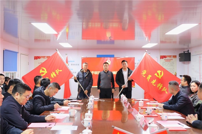仪式现场,龚玲燕宣读支部成立批复文件,明确临时党支部核心工作方向;临时党支部副书记戚小祥详细介绍支部“支部委员会+南北地块党小组”两级组织架构,及后续党建工作实施规划。张国华为临时党支部授牌,并为相关人员颁发廉洁履约监督聘书;吴跃林为项目授予“党员先锋队”旗帜,此举标志着项目党建引领建设攻坚、协同推进工作正式启动。各参建单位代表现场表态,将以党建为核心引领,从严把牢安全生产、工程质量、施工进度三大关口,凝心聚力共推项目高质量建设。