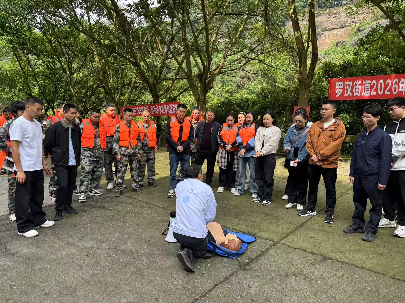 演练结束后,罗汉街道特邀龙马潭区第二人民医院急诊科医生开展急救知识现场教学,医生通过实操演示、手把手指导的方式,向参演人员讲解心肺复苏、伤口包扎等实用急救技能,切实提升大家的自救互救实操能力。